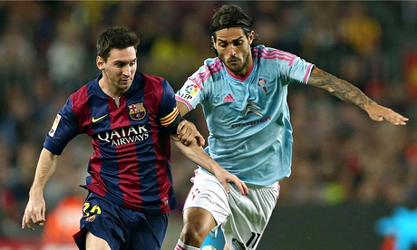 It came on 55 minutes and it came from a long clearance from Sergio. Javier Mascherano was out-jumped by Pablo Hernández, whose flick-on reached Nolito, a strong candidate to get his first Spain call-up in a fortnight’s time. As it bounced up, Dani Alves made a mess of bringing it under control and Sergio Busquets dangled a foot tentatively, watching it escape him. Nolito back-heeled cleverly into the path of Larrivey who slotted the ball home.